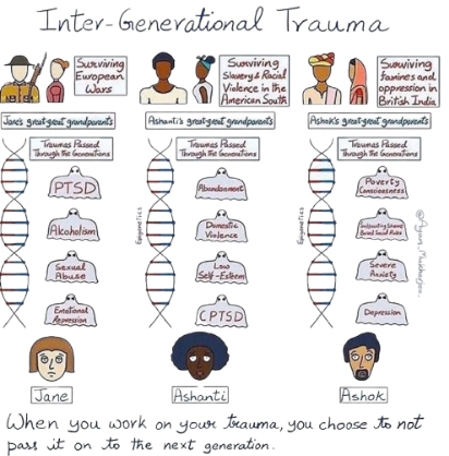 Traumele transgeneraționale sunt frânturi de sentiment aruncate undeva în subconștient, în acest suflet abisal, și înmagazinate „pentru zile bune”. Aceste sentimente reziduale sunt transmisibile (adesea chiar transmise) către viitorul copil, ce le va prelua ca informație genetică și va acționa ca atare. Astfel, comportamente disfuncționale sunt dobândite și exprimate de proaspătul copil încă din primii ani de viață.